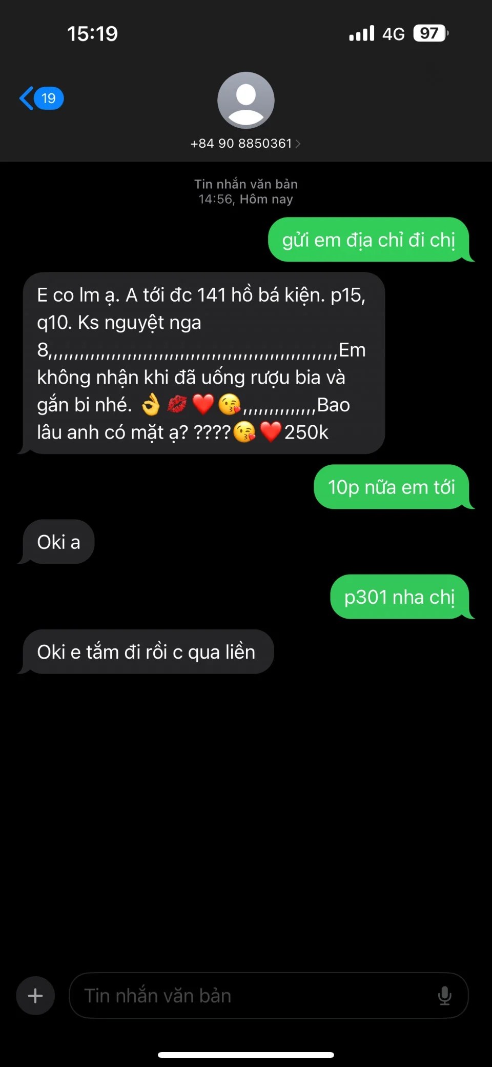 Bước vào phòng, em này cũng biết điều lắm – không tỏ thái độ chảnh chó, không vội vã đuổi khách. Vào thì mỉm cười, rót nước, cởi quần áo cũng chịu khó, nhưng nói chuyện thì lơ mơ, kiểu cho có, chẳng tán tỉnh hay gợi tình gì đâu. Được cái chiều khách, muốn kiểu gì cũng chiều, nhưng hết sức bình thường, chẳng có tí nào gọi là nhiệt tình hay làm mình hưng phấn. Đụ thì được, nhưng gặm tí ti hay bú bím cũng chỉ làm cho xong, chẳng có cảm xúc gì.