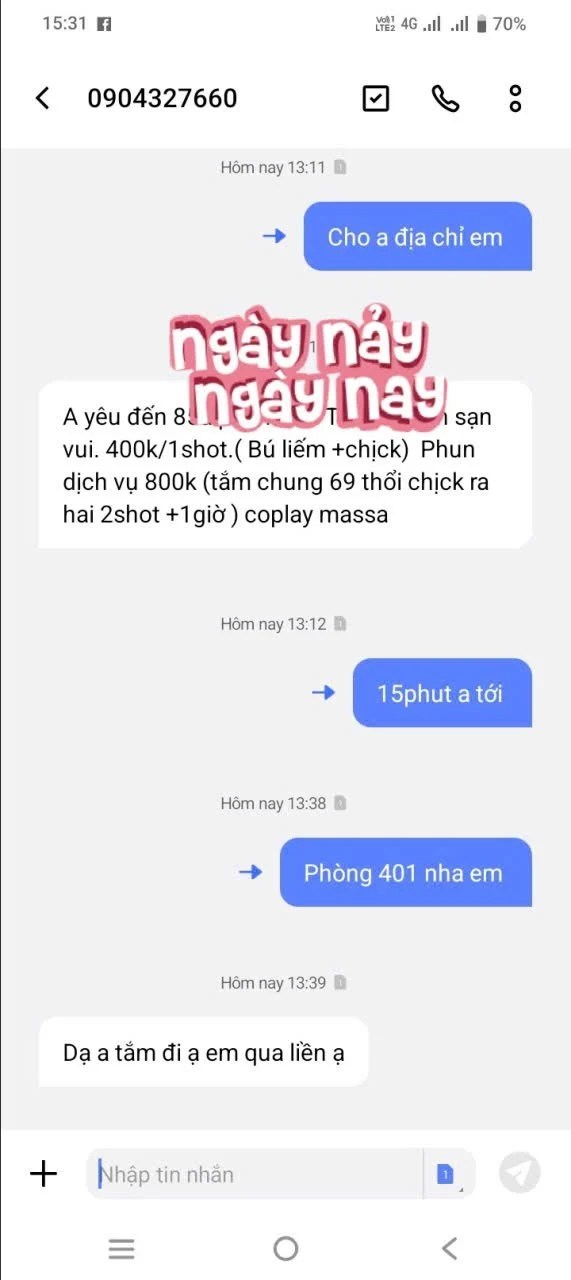 - Dịch vụ: Qua đêm, Hôn môi, Vét máng, Dọn WC, BJ, Hôn vú