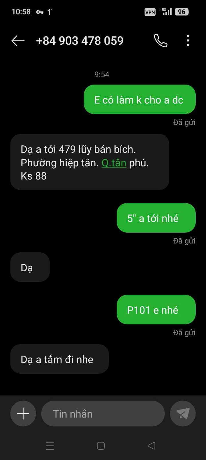 Dịch vụ thì làm đủ trò: liếm ti, bú cặc, đá bi – thằng nào thích kiểu vợ dâm thì chắc chắn sướng. Địt kiểu gì cũng chịu, rên nghe mà cặc muốn nổ tung. Giao tiếp thì vui vẻ, nói chuyện cũng kiểu dâm dê, không phải loại chán chết. Giá rẻ như cho, phù hợp mấy thằng vừa vã vừa hết tiền.