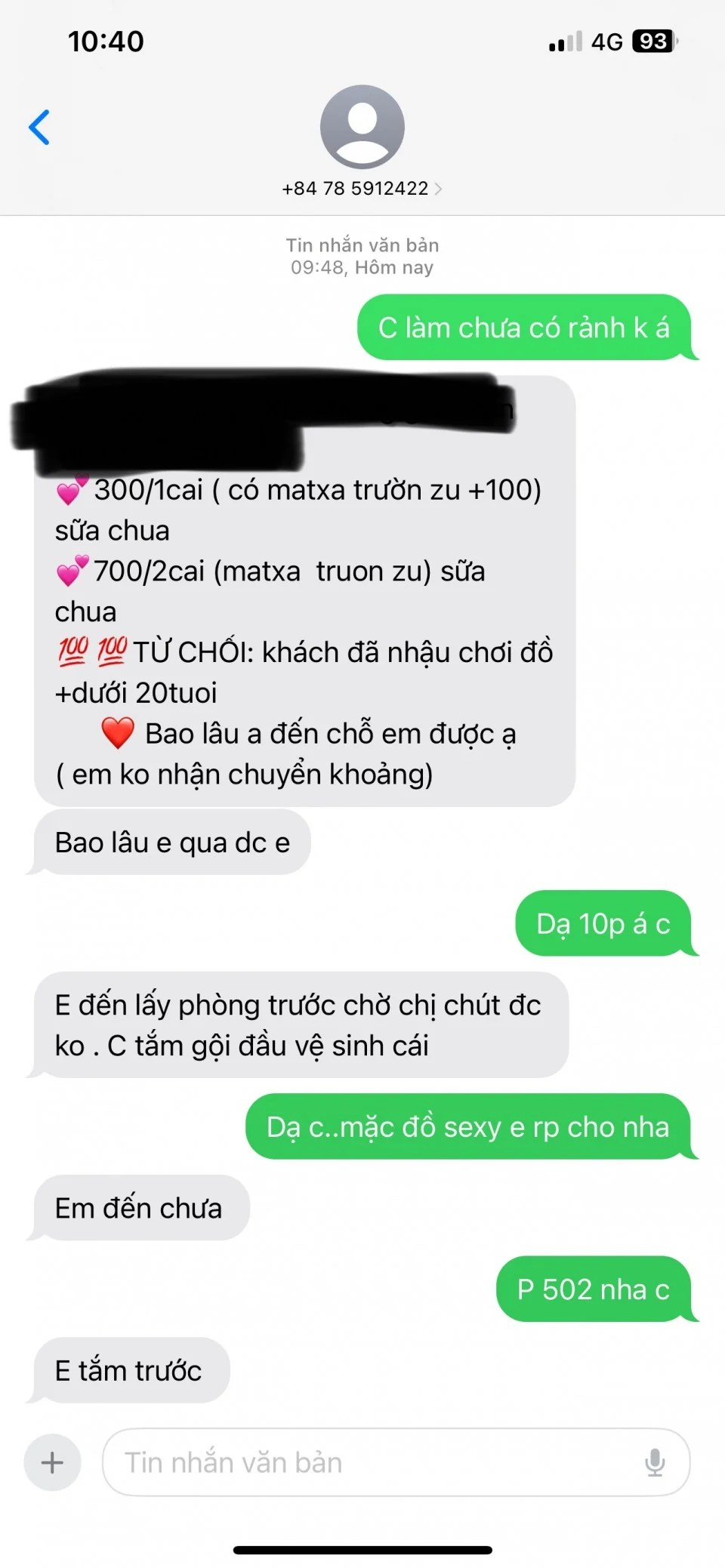- Dịch vụ: BJ, Hôn vú, Qua đêm