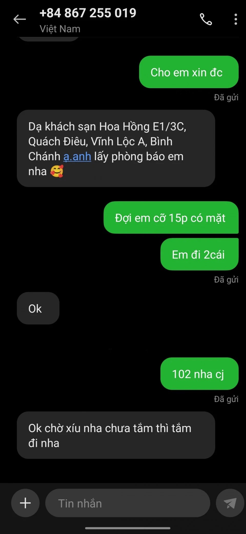 Em này nhìn mặt non, kiểu ngơ ngác mới vào nghề, thái độ cũng được, chưa biết điệu nghệ cho lắm nhưng chịu khó, ai lịch sự nhẹ nhàng thì nó cũng vui vẻ chiều tới bến, không gắt gỏng gì đâu. Nói chuyện thì hơi nhạt, được cái hay tâm sự, kiểu vừa làm vừa thủ thỉ như gái thiếu hơi lâu ngày – đỡ bị cụt hứng. Giá thì bèo, hợp anh em cần ra nhanh, không cầu kỳ, thích bú vú múp rồi bắn phát xả stress xong té. Anh nào mong kiếm hàng siêu phẩm thì khỏi mơ mộng, còn ai chỉ cần chút hơi gái, thích loại thịt tươi non, vú to cho đã nứng thì cứ mạnh dạn quất. Lưu ý: đừng ảo tưởng dịch vụ gì cao siêu, cơ bản là chính, đỡ hơn không có!