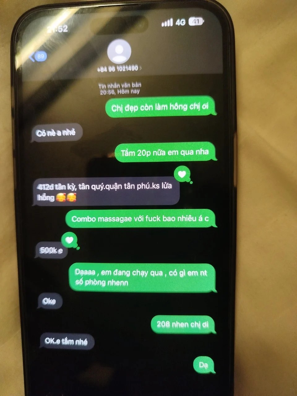 Khẳng định không tráo hàng, không kiểu công nghiệp, cứ đúng người đúng dịch vụ, yên tâm không bị lừa đảo ba lăng nhăng. Thêm nữa, anh em nào thích thư giãn thì em có nhận massage, phụ phí 200k – kéo giãn gân cốt, vừa chịch vừa xoa bóp, đỡ mỏi người, cũng ổn áp cho thằng nào muốn đổi gió nhẹ.