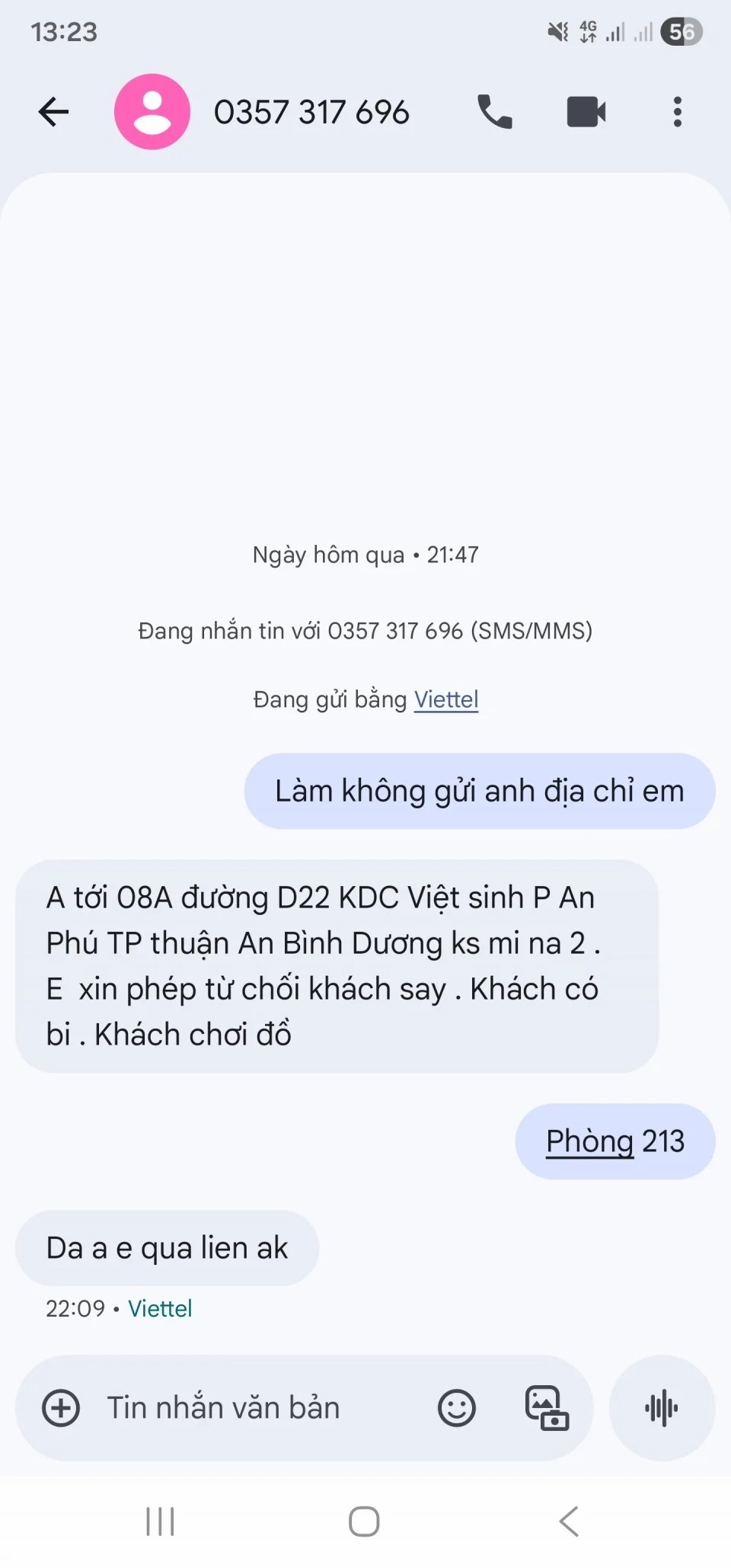 Đám anh em nào hết sạch tiền hay cần bắn nhanh chống vã thì cứ nhảy vô em này, khỏi nghĩ. Hàng kiểu mẹ bỉm, da thịt sề sề, có tí đẫy đà, ngực với mông thì ấn vào còn thấy mềm mềm, sờ cho vui tay chứ đừng mơ hàng nuột. Được cái em này cởi mở, nói chuyện xàm lồn cả buổi không chán, khách muốn gì em cũng gật, chiều hết cỡ miễn là không bày trò dị quá.